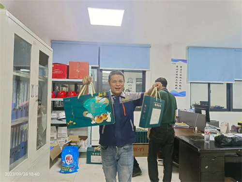 在2023年中秋、国庆“双节”来临之际,为感谢全体员工的辛勤付出,增强员工幸福感、凝聚力,切实激发员工工作积极性,9月28日下午,金邦泰&友邦为全体员工发放中秋、国庆节暖心福利,并送上浓浓的关爱和满满的祝福~