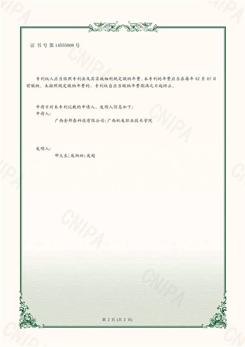 日前,经过我公司和广西机电职业技术学院技术人员的努力下,共同获得了两项实用新型专利。“一种便于更换集尘布袋的集尘装置”(专利号:ZL202120330886.1)和“一种自动清理高粘度粉尘的布袋集尘装置”(专利号:ZL202120330889.5),专利证书的获得进一步增强了我公司的科技研发实力。